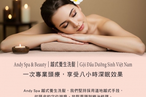 Andy Spa 越式養生洗髮位於高雄新興區,鄰近六合夜市,主打越南按摩美容技術,配合乾淨環境。品牌提供洗頭與頭療服務,深入清潔與頭皮護理,輔助現代人掃空疲憊感與壓力,獻上全方位的舒壓體驗。從洗髮、肩頸按摩、去角質、顱腔放鬆到調理系的芬芳精油,服務尤其強調全套,像是頭療就帶有洗頭、敷臉、穴位按摩、修指甲等等,非常推薦來體驗一次做到好的完整服務!